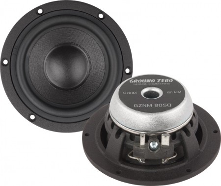 Ground Zero GZNM 80SQ on Ground Zero Nuclear -malliston huippulaatuinen 3.15″ keskiääni jonka kartio on päällystettyä paperia ja magneetti neodymiumia. Tämä elementti on suunniteltu käytettäväksi aktiivisen 3-tie etupään keskiäänenä. Kaiuttimien mukana tulee suojaritilät.