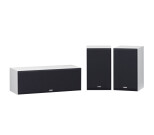 Keskikaiuttimen ja kahden surround-kaiuttimen sarja.