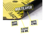 - Alin kerros on butyylikumia, jonka tehtävä on vaimentaa pellin / osien resonointi. Tämän kerroksen paksuus on 1,2mm.