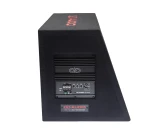 Kotelon kyljessä oleva vahvistin on 400 Wattia jatkuvaa tehoa antava monopääte. Signaali voidaan tuoda vahvistimelle käyttäen RCA-liitäntää. Pakkauksen mukana toimitetaan myös langallinen tasonsäädin.