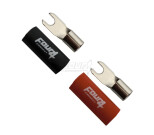 Tässä pakkauksessa on yksi musta ja yksi punainen haarukkaliitin. Liittimien haarukka sopii M4 pulttiin ja liittimiin käy 10 mm2 kaapeli.