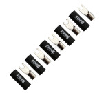 Tässä pakkauksessa on viisi mustaa haarukkaliitintä. Liittimien haarukka sopii M4 pulttiin ja liittimiin käy 10 mm2 kaapeli.