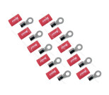 Tässä pakkauksessa on 10 punaista rengasliitintä. Liittimet sopivat M8 pulttiin ja liittimiin käy 20 mm2 kaapeli.