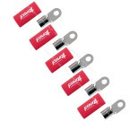 Tässä pakkauksessa on 5 punaista rengasliitintä. Liittimet sopivat M8 pulttiin ja liittimiin käy 35 mm2 kaapeli.