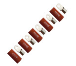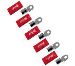 Tässä pakkauksessa on 5 punaista rengasliitintä. Liittimet sopivat M8 pulttiin ja liittimiin käy 50 mm2 kaapeli.