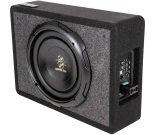 Tämä litteä 8″ subwoofer on suunniteltu toimimaan täydellisesti alaspäin ampuvassa kotelossa. Toimii myös erittäin hyvin vararengas montussa tai penkin alla. Sisäänrakennettu AB-luokan vahvistin on todella tehokas ja sen erikoisuutena on pikkiinnikkeillä varustettu virtaliitin. Virtaliittimen irroittamalla voit tarvittaessa siirtää basson sivuun jos se on tielläsi ja kytkeä sen todella helposti takaisin.