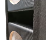 Enclosure is upholstered at black carpet and the front panel has carbon fiber look tape. Enclosure has cable terminals also.