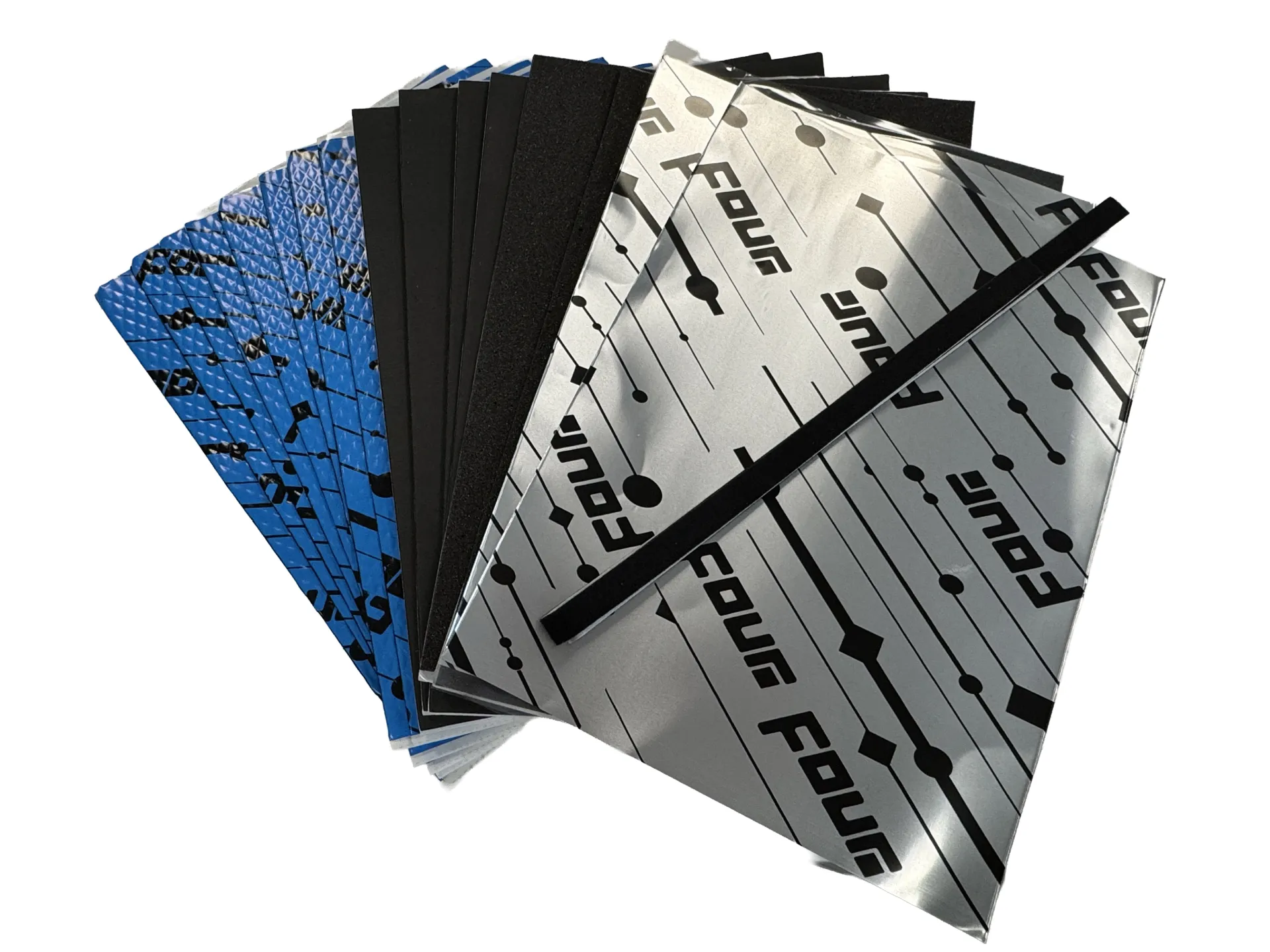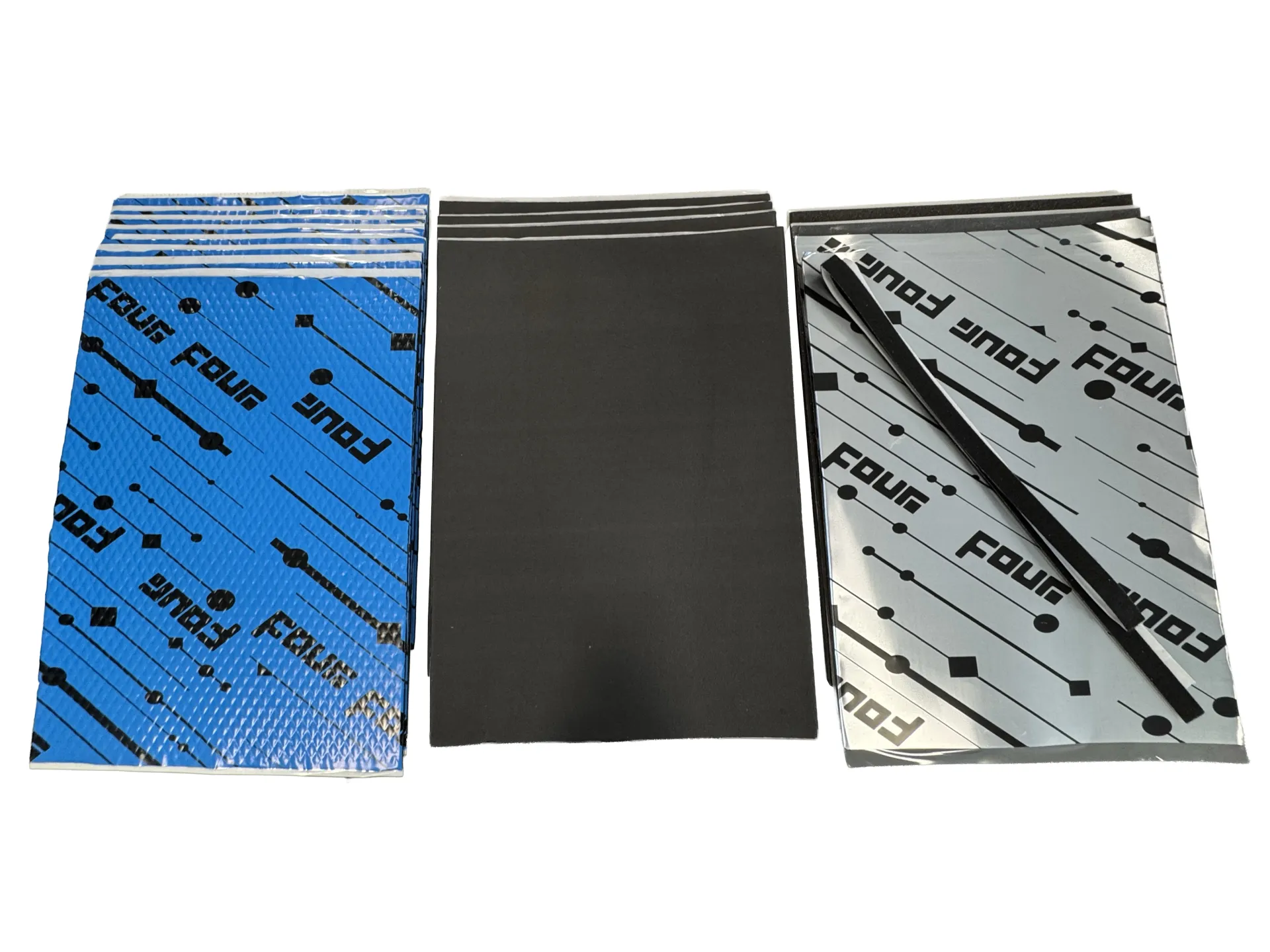 The package contains five different damping materials: