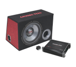 Amplifier: - 2 Channel Class A/B - RMS Power @ 4 Ω (14.6V) 2 x 60 W - RMS Power @ 2 Ω (14.6V 2 x 80 W - RMS Power @ 4 Ω (14.6V)1 x 200 W - MAX Power @ 4 Ω Gebrückt (14.6V) 1 x 300 W - Lowpass: 50 – 250 Hz - Bass Boost: 0 – 6 dB ( 45 Hz ) - Frequency response: 5 Hz – 30 KHz - Input sensitivity: 150 mV – 5 V - Auto-On @ High Input - Dimensions / overall W x H x L (mm/inch) 180 x 236 x 53 mm / 7.09″ x 9.29″ x 2.09″ Subwoofer: - Type: 30 cm / 12” with Aeroport tube - Power handling: 300 W - Impedance: 4 Ohm - Volume netto: 40 Liter / 1.41 cu.ft - Port tune 35Hz - Dimensions L x H x D (mm-inch): 560 x 360 x 350/250 mm / 22.05″ x 14.17″ x 13.78″/9.84″