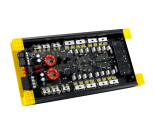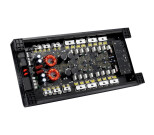 4-channel amplifier with class A/B circuit, integrated activ crossover and efficient, anodized heatsink