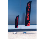 Flag low model. Includes flag, pole, base, water fill base weight, and bag.
